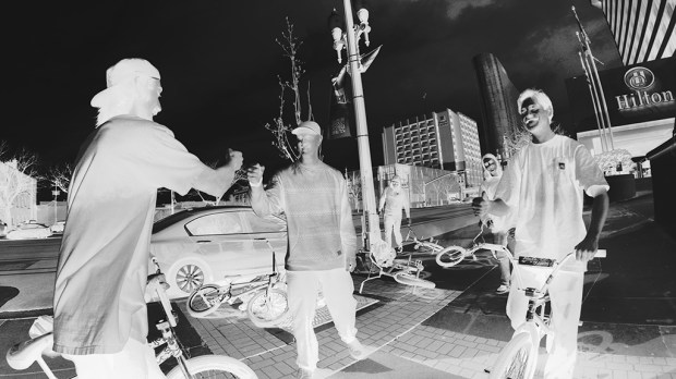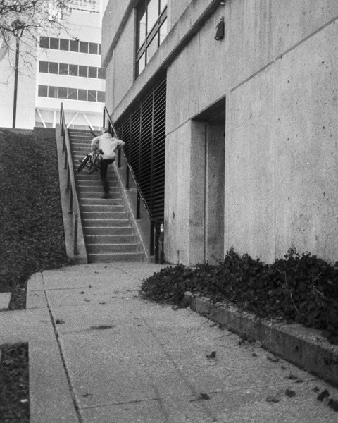 “The name came from a long, long list of hypothetical video titles compiled in a word doc on my google drive. I started the list sometime in or around 2013 while trying to come up with a title for our first hometown full-length Newlyweds and Nearlydeads. Every time I hear a peculiar phrase, or even one singular word that has some type of statement or strong conceptual value, it goes in the list. The list is currently 2.5 pages long, and Running With Scissors was jotted down at about page 1.5. I had that title well before we started filming. If I were to guess, that one was jotted down sometime in 2021. Once I started to understand the energy of the roster of the video, that name kept popping up. About a year into filming, I ran it by the guys and it seemed to have unanimous approval. So we ran with it from there! I think it conveys a sense of recklessness and angst. BMX is a great vessel to release that type of energy in a healthy and creative way.”