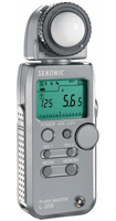 The meter to buy (if you are going to buy one). Straight forward design, can do amient or flash readings, can be paired to PocketWizard units using the RT-32 module (definitely not a necessity, but very convenient). Can do reflective or direct light readings. I find myself not using a meter a lot of the time if I am shooting in a hurry, instead shooting a test and using the on-camera histogram to check exposure (not recommended). This is the only flash meter I have used, and pretty much the only one I see being used, besides the Minolta Auto Meter VF. It runs on 2 ‘AA’ batteries.accessories– RT-32 module (to fire pocketwizards), ‘AA’ batteries (required)